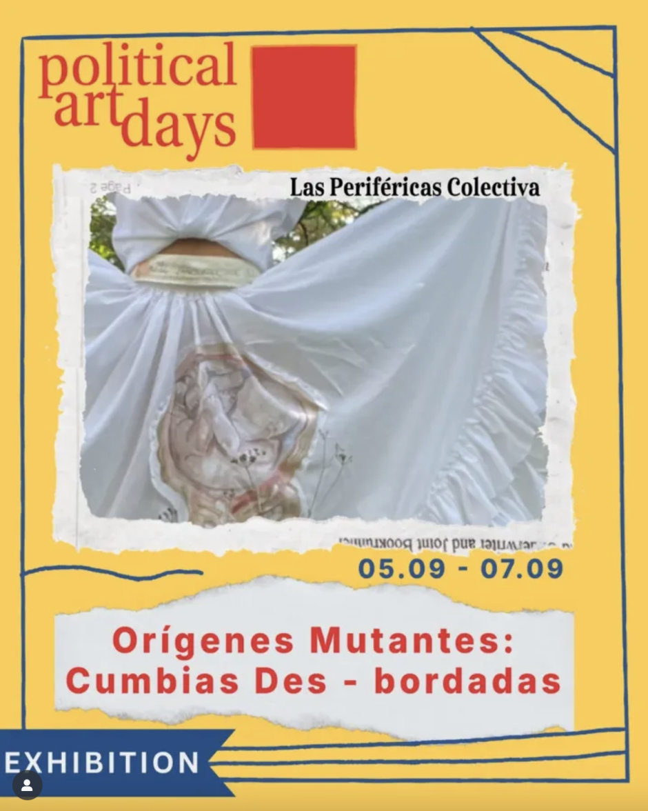 Orígenes Mutantes: Cumbias Des-bordadas at the Kultur Forum gallery in Dresden, as part of the exhibitions of the Political Art Days festival. Las Periféricas colectiva have participated with a video installation, and collectives workshops of dance and embroidery during the weekend 5-7 th of September 2025 in Dresden- Germany.